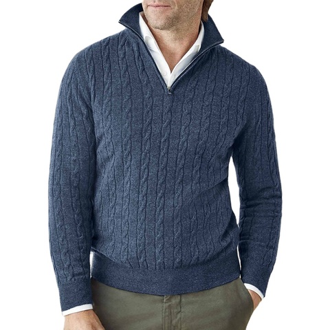 سعر الجملة سترة رجالية طويلة الأكمام الكشمير متماسكة بسحاب.